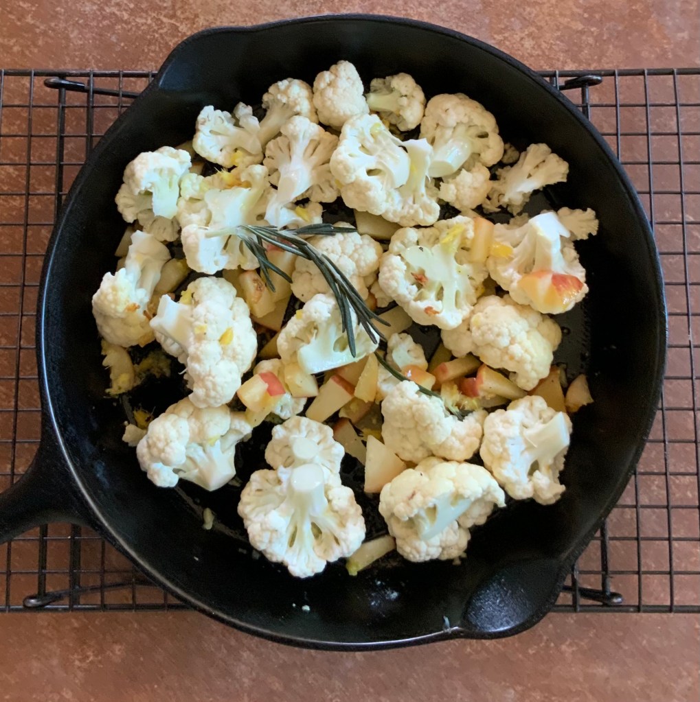 • Add the cauliflower and mix everything together well. Add the rosemary.