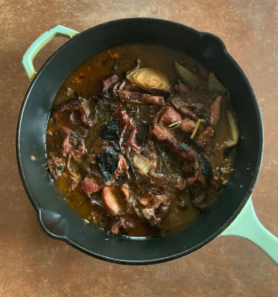 Sauce Espagnole is one of the basic French Brown Sauces, with a dense, concentrated roasted beef flavour. It is not labour intensive, but is best begun the day before and finished over several hours on the day of serving