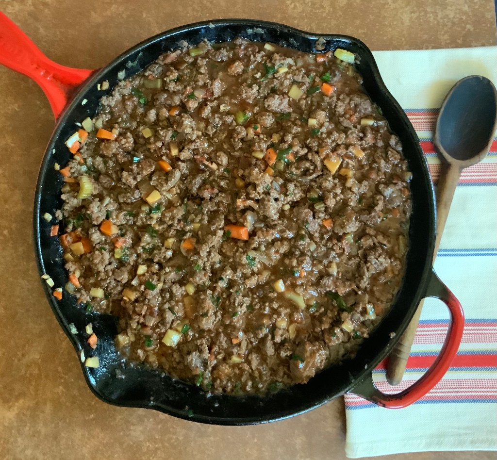 Note; Ground beef may replace the lamb: Hachis Parmentier de bœuf.