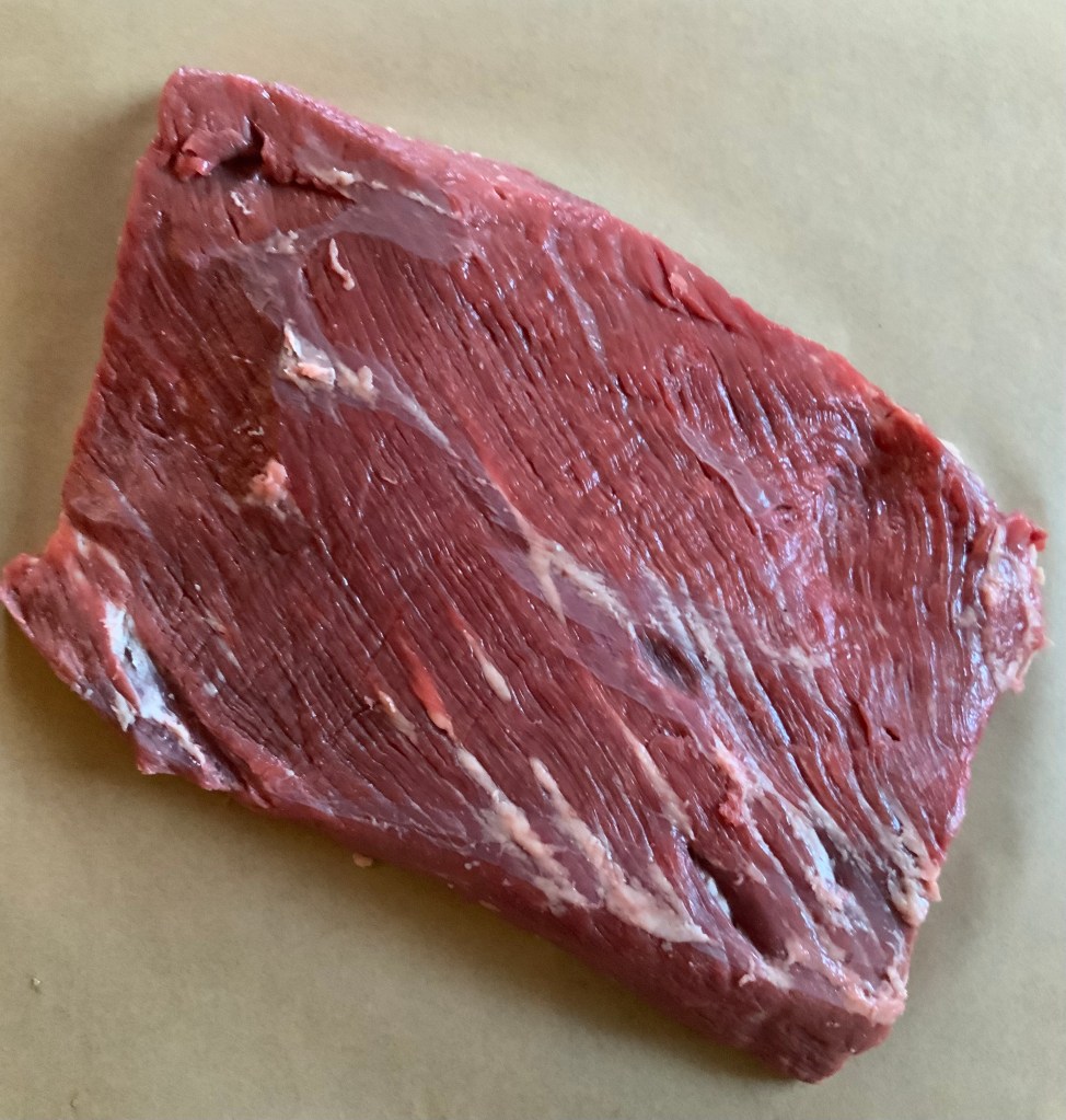 - Add 3 tablespoons of butter to the pan. When it is melted and no longer foaming, add the brisket and brown it on both sides. Transfer it to a platter while you sauté the julienned vegetables–again just until their edges begin to colour.