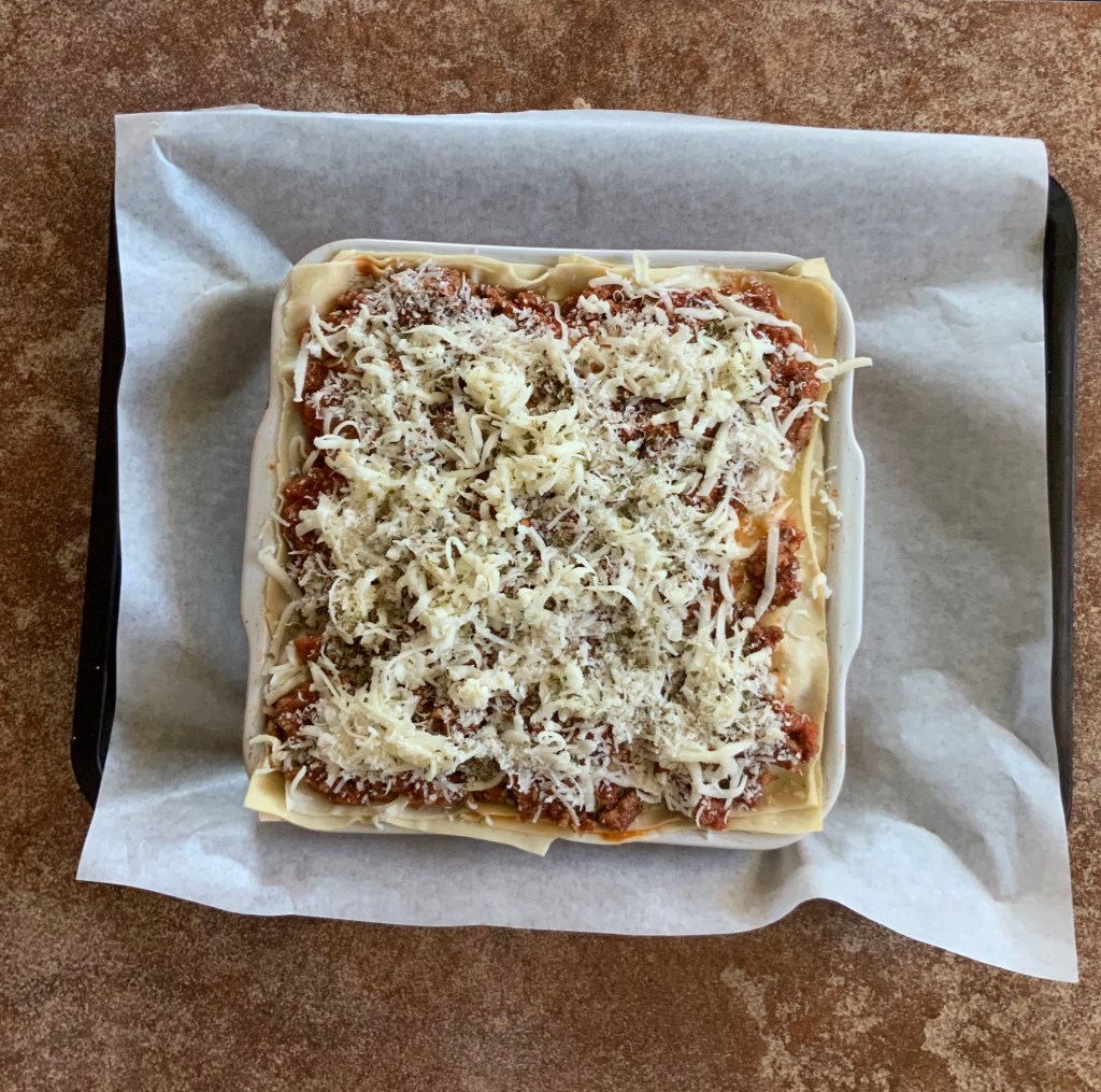 • a Rimmed Pan lined with Parchment on which to bake the lasagne and catch any sauce that bubbles over