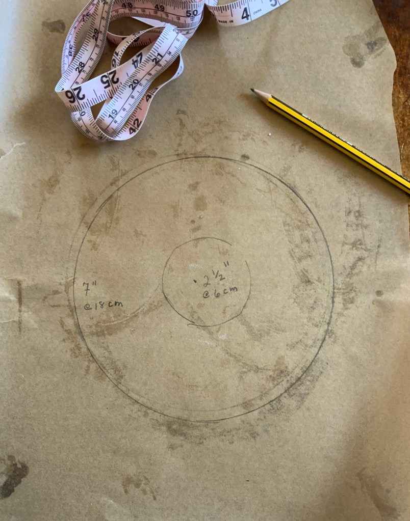 - Preheat the oven to 375 F. Streak the baking sheet with butter to hold down the sheet of parchment and lay the parchment paper on it. Using a couple of bowls as guides, trace a 7-inch ring on the paper, and in the middle of that ring, another ring, 2 and 1/2-inches in diameter. (The circles are general, not precise, guides for forming the Gougère.):