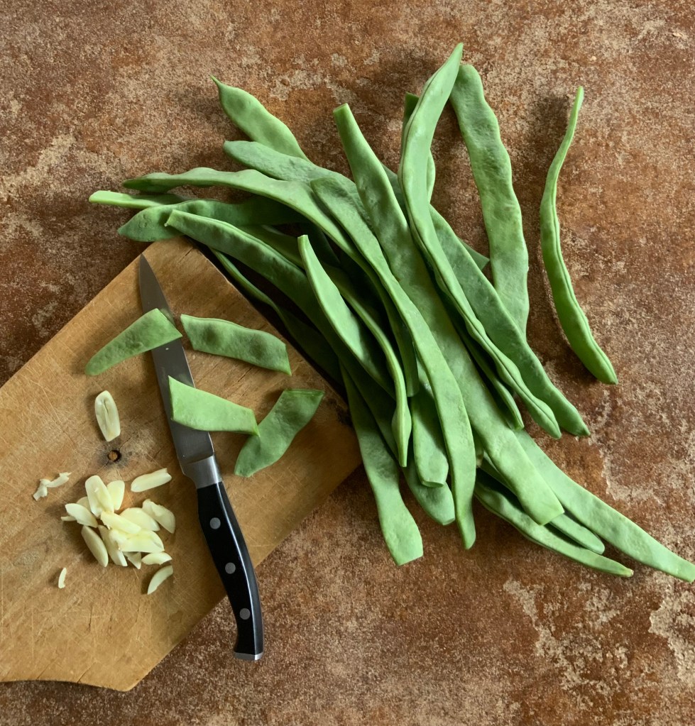 - 1 pound (454 g) of Romano Beans, tipped and tailed (i.e. remove the stem end and the pointed end) and each cut into 4 or 5 lengths: The beans are stringless.