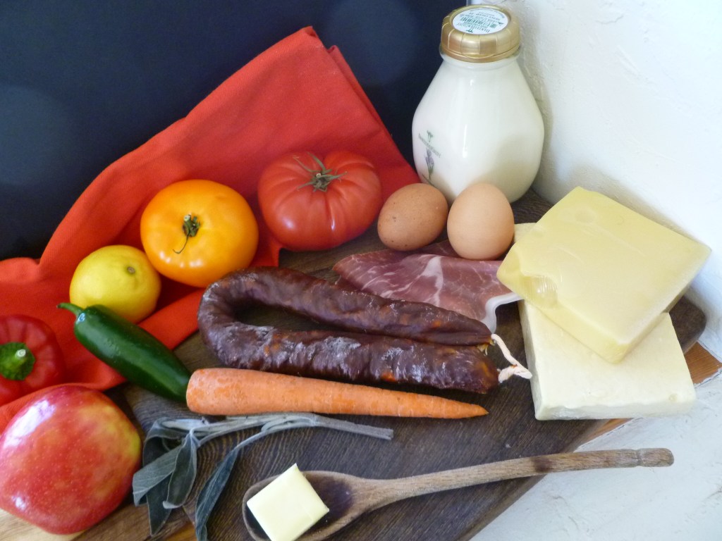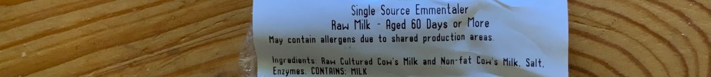 Gruyère AOP: Gruyère AOP is a cheese from the Gruyère region of Switzerland. It is made from a recipe dating back to 1115. Government regulation and a Swiss support for keeping their traditions alive ensure that the traditional process is followed and traditional ingredients are used. The ingredients are: Cultured Raw Cow’s Milk, Salt, Animal Rennet.