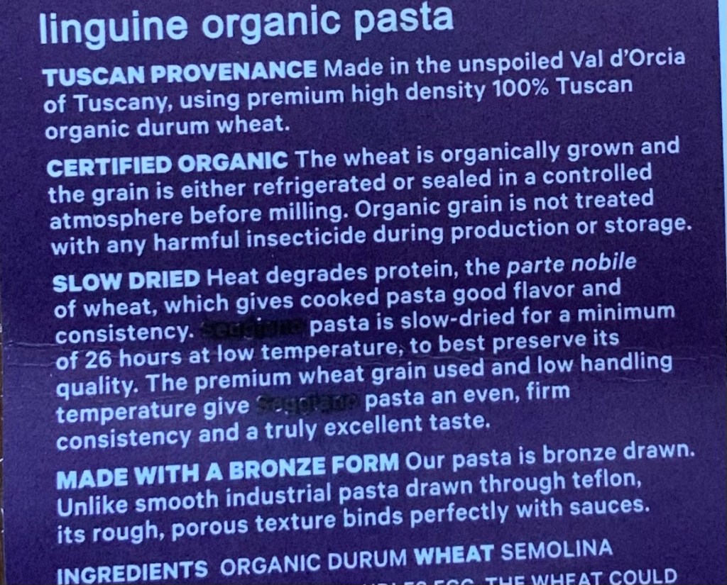 Dried Pasta: There are imported Italian dried, packaged pastas that are made with unenriched organic hard wheat flour. Some contain a single ingredient: Durum Wheat Semolina.