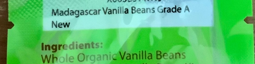 Organic vanilla beans are used to make homemade vanilla extract. A small number of beans are used and replaced in the extract infrequently. We buy only a small pack at a time, of good quality, and store them in the freezer.