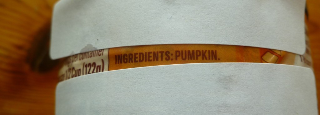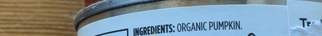 Sometimes we use organic pumpkin and sometimes not. Either way, the canned pumpkin used in thefoodlessprocessed recipes contains one ingredient: Pumpkin.