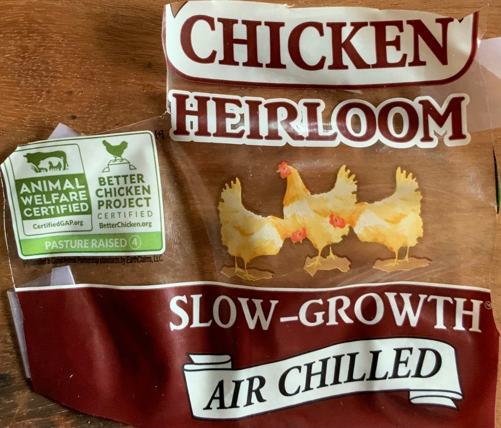 Key points to understand when choosing less processed chicken are: heirloom, slow-growth, air-chilled and humanely raised. Three of these points are discussed below in the remarks about Heirloom Chicken.