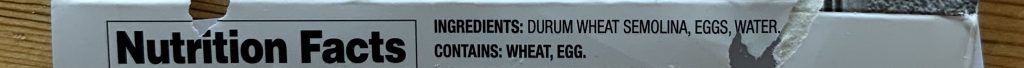 Other pastas contain two ingredients: Durum Wheat Semolina and Eggs.