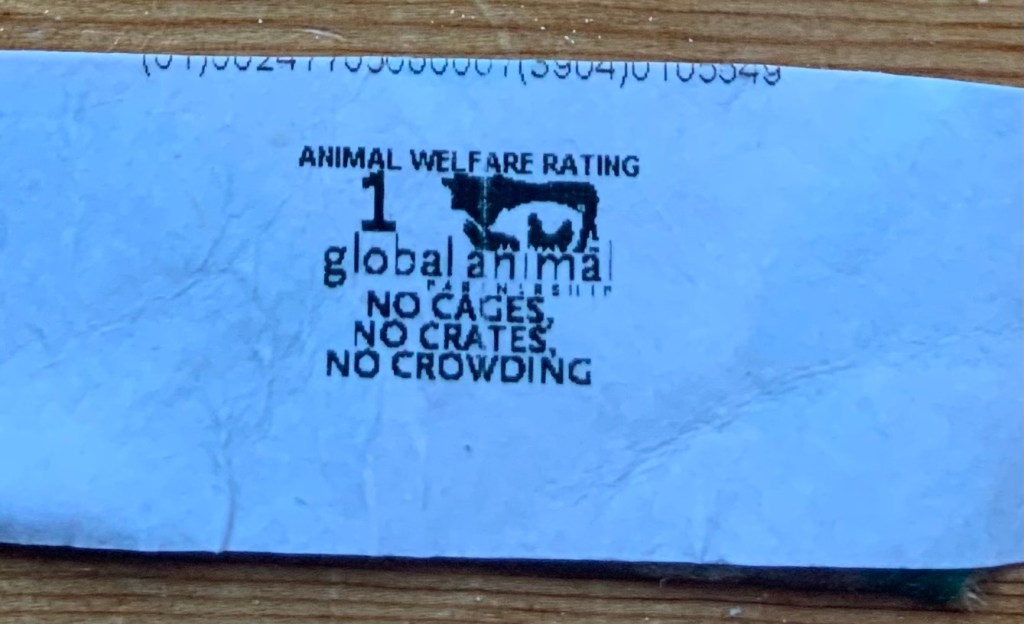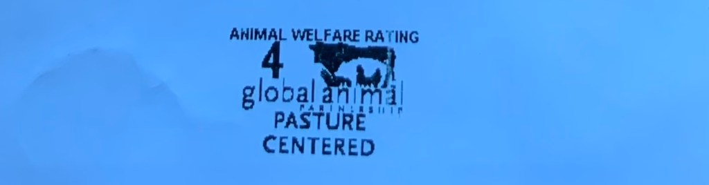 Here are two examples of an independent certification that may appear on a label. These, by the Global Animal Partnership, use a 4-tier ranking system. The highest welfare level is 4 to 5-plus. Level 1 does not include: Outdoor access or pasture grazing; freedom to roam beyond basic indoor space; assurance of organic or antibiotic-free feed; what is known as “high-level behavioral enrichment” that is more common in Steps 3 to 5-plus. “High-level behavioral enrichment” refers to practices that are intended to go beyond keeping the animals physically healthy, to address their overall well-being and natural behavior.