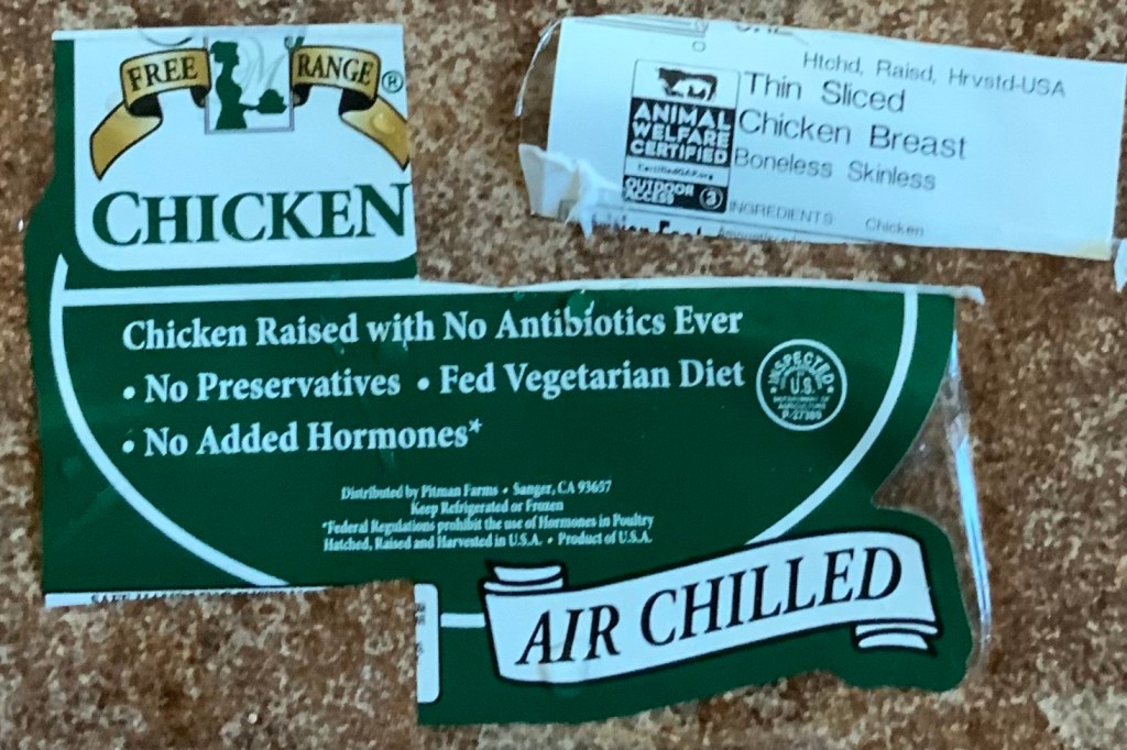 Chicken Breasts (boned): The boned chicken breasts for these recipes are a thin-sliced variety. They are free-range, GAP Animal Welfare certified, which means not only outdoor access during the day, but access to a space that encourages natural behavior/living. Animal Welfare has a 6-tier rating system. The label below shows a 3 rating which is defined as welfare standards higher than baseline, but not as high as pasture-raised (level 4 or above).