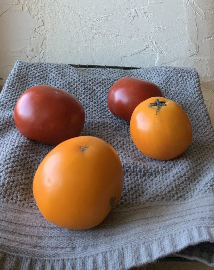 Dry-farmed tomatoes are grown mostly with rainfall rather than irrigation. Like Heirlooms, they are very flavorful. They keep longer at room temperature than Heirlooms.