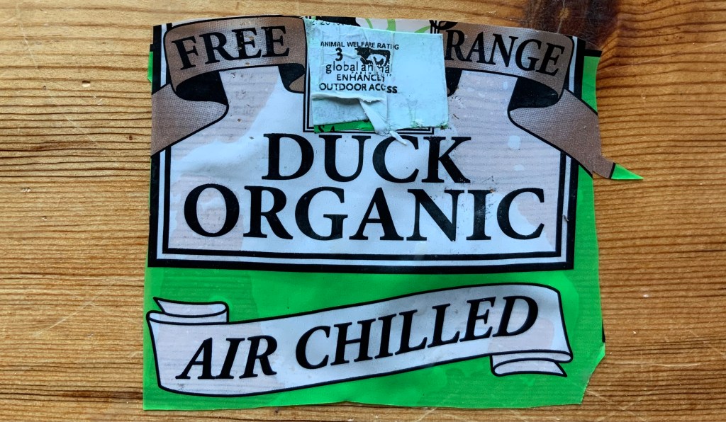 If a duck is labeled “organic”, that means it is fed !00% USDA-certified organic feed. The feed ingredients are grown without synthetic pesticides and are vegetarian. Organic birds cannot be given antibiotics for disease prevention, and if treated, they lose their organic status.