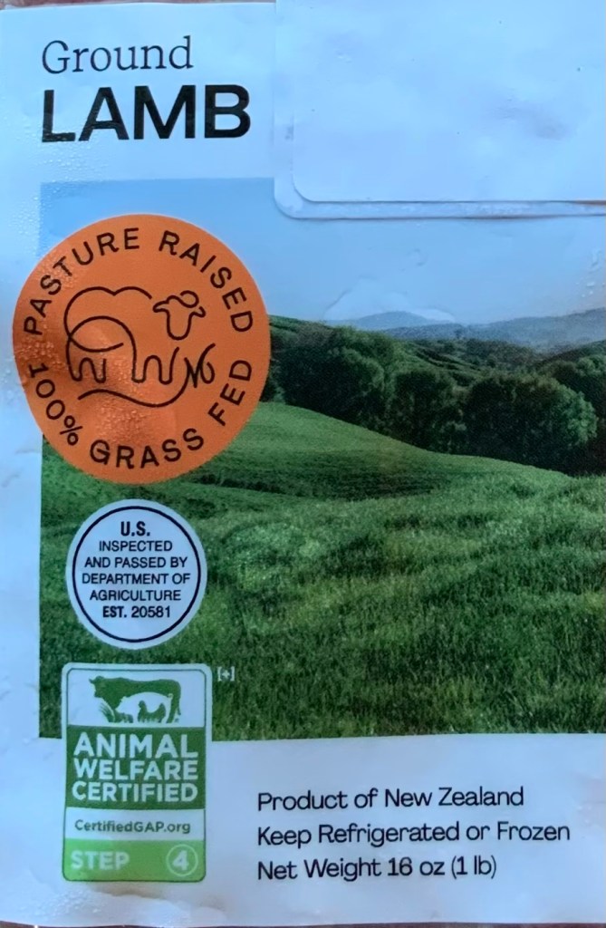 Ground Lamb: The New Zealand ground lamb in thefoodlessprocessed recipes is pasture-raised and 100% grass-fed. The example below is GAP-certified, Step 4. (Read about programs providing meaningful certification of the humane treatment of creatures raised for food below: Meat.