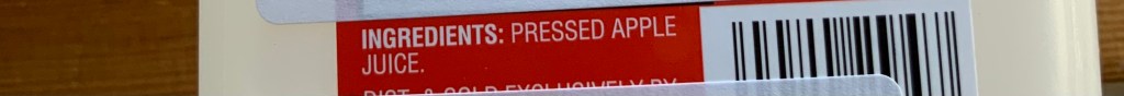 It contains one ingredient: Unfiltered Juice from Certified Organic Apples.